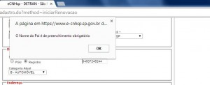 Depois de entrarem em contato comigo via Twitter, o @Detransp me assegurou que eu iria conseguir fazer o agendamento sem preencher o campo ‘nome do pai’, que consta como obrigatório e que por isso mesmo, é discriminatório, pois pessoas como eu, que não tem pai, ou que não tem mãe ou ambos, em seus registros de nascimento, estão discriminadas pelo serviço público e são obrigadas a colocar coisas do tipo: “nada consta”, “não consta”, “nao existe”, “em branco” ou qualquer coisa do tipo.