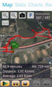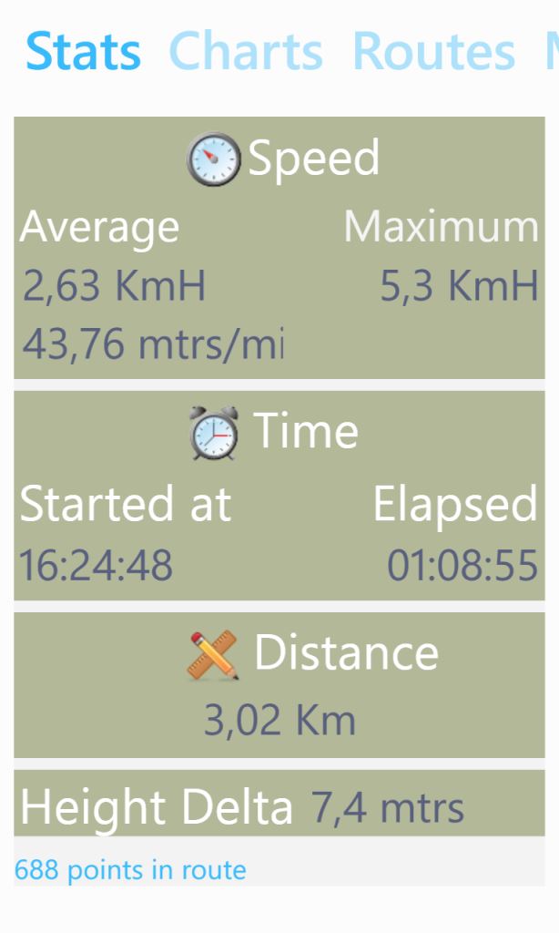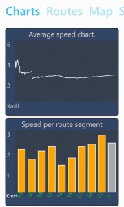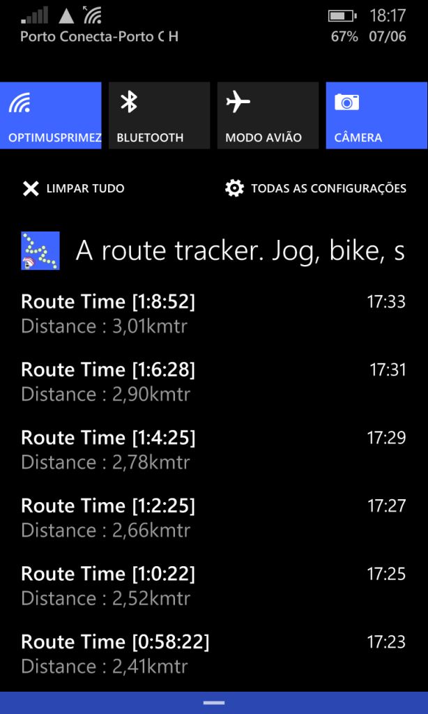 Abaixo, o caminho que fizemos e os relatórios do app Route Tracker: