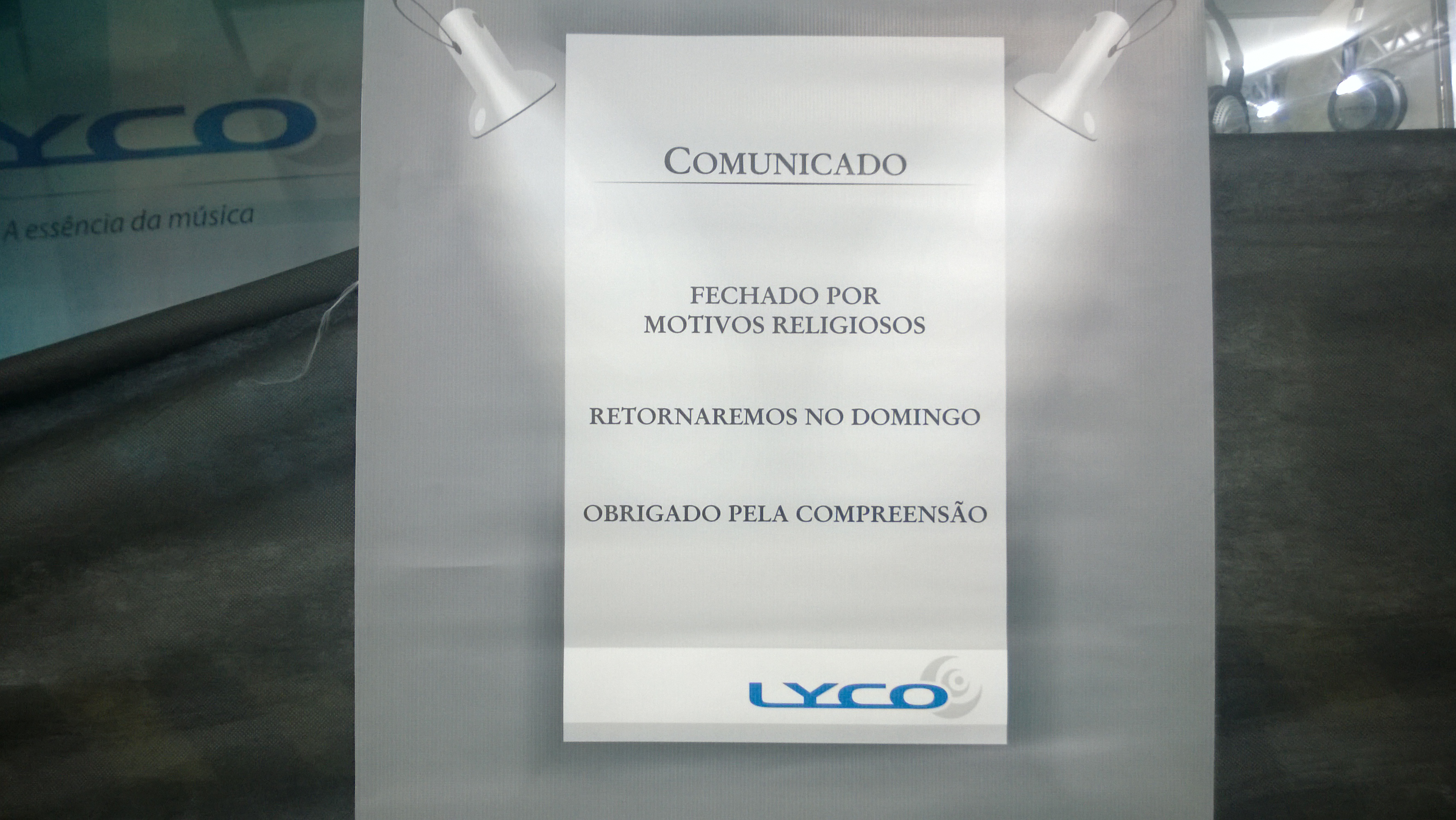 E lá pela Expomusic, andando no evento, topamos no sábado com esse aviso inesperado: