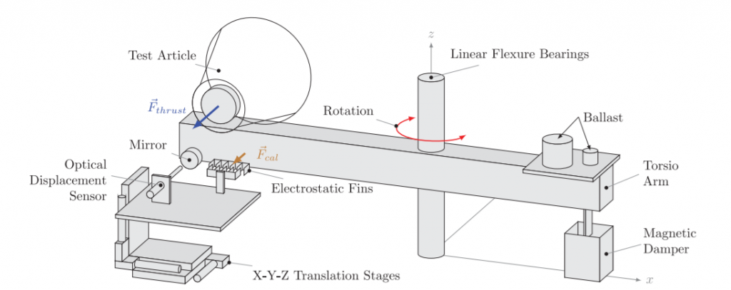 O impulso foi testado com um balanço de torção: um fio de metal rígido em que o dispositivo é pendurado com um contrapeso. A torção do fio dá uma medida extremamente precisa de qualquer força. Os autores reivindicam um impulso positivo na direção esperada em todos os níveis de potência, e esse sentido inverteu quando a orientação do dispositivo foi trocada, como esperado. As pressões foram relatadas como as mesmas observadas num ambiente não-vácuo. A potência média de impulso para entrada observada foi de cerca de 1,2 mili-Newton por quilowatts. Isso é muitas vezes menor do que os impulsos relatados por experimentos de Shawyer. Mas ainda é muito maior do que propulsor de fótons produziria, eliminando este contra-argumento.