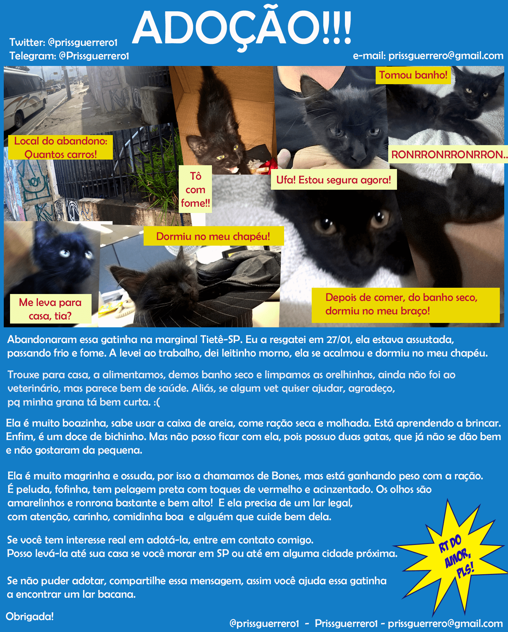 UPDATE: ESSA GATINHA FOI ADOTADA POR NÓS, É A BONES! ——