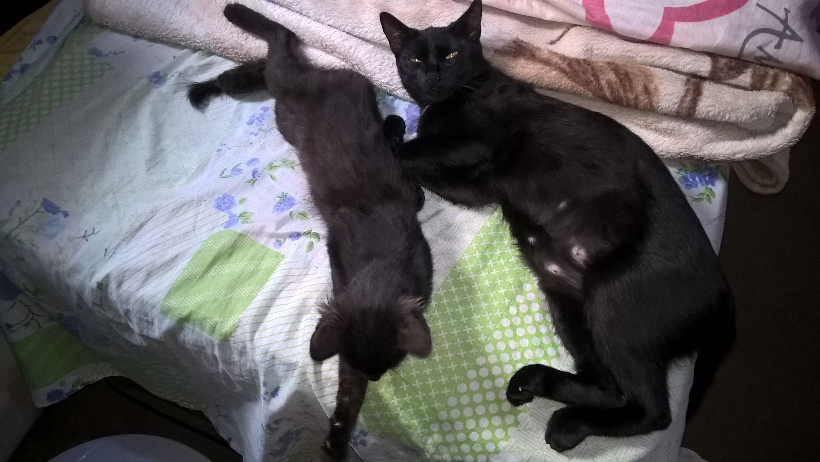 Rock ON! Michonne e Bones, tá na hora de Nanar!! Michonne And Bones, Its bed time!! Atualmente Michonne tem 10 meses de idade. Bones tem cerca de 5 meses. Mas as duas estão quase do mesmo tamanho, sendo que Bones tem pelos mais longos que Michonne. —— Música: Baila_Mi_Cumbia_Sting,  Jimmy Fontanez/Media Righ Licença: “Você pode usar esta música e gerar