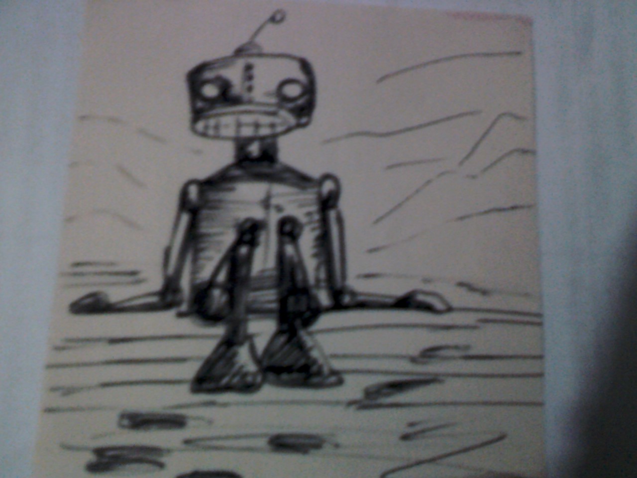 Rabisquei isso outro dia: um robô de rua. –“ô, seu dotô! Dá um parafuso ae? Um copinho de óleo?” Clanc… clanc.. clanc…