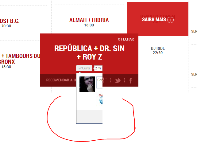 Fui dar like numa banda que gosto, a Dr. Sin e vejam o resultado feioso. Usando o Chrome como navegador.