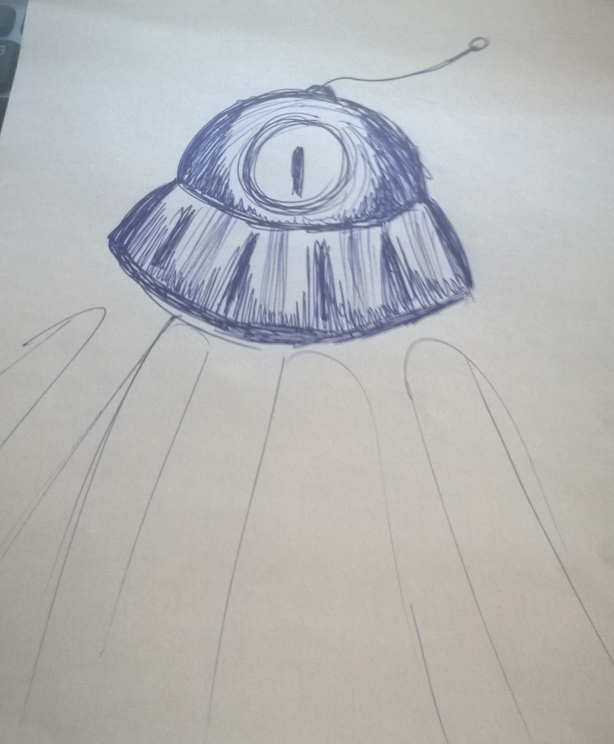 A criação do alien também foi um problema. Eu não queria um alien padrão. Queria diferente. Mas se eu fizesse algo parecido com um monstrinho, não teria a rápida compreensão do espectador que aquilo seria um alien. Então, tive que optar mesmo por usar o senso comum, a imagem padrão que temos de aliens: um cabeçudo com olhos grandes, pescoço fino, mãos compridas e verde. O disco também foi padrão.