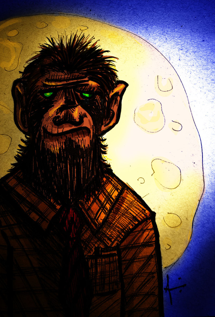 Eu assisti o filme Planeta dos Macacos 2 e fiquei bem empolgada com a história toda. Daí, resolvi desenhar um macaco do filme. Bom, falhei miseravelmente e saiu um lobisomem.