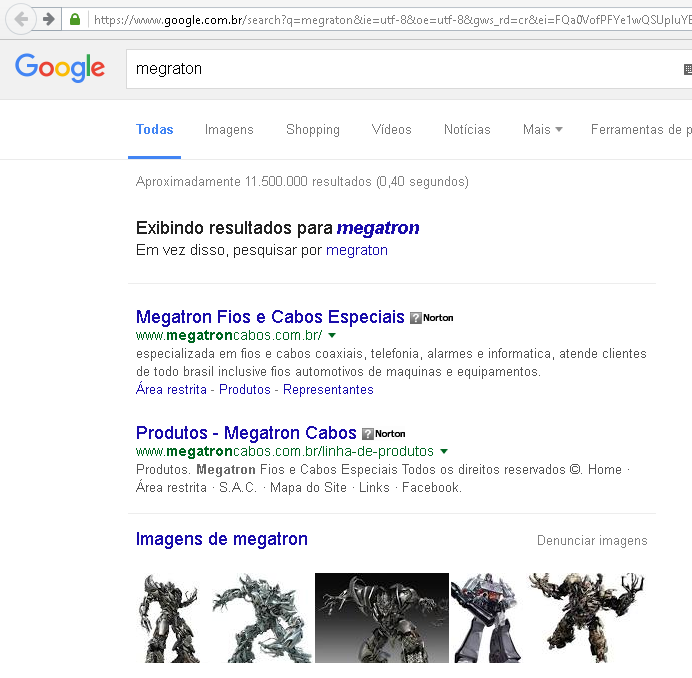 Digitei Megatron, que é nome de um personagem dos Transformers, lá no Google e a resposta foi inacreditável.